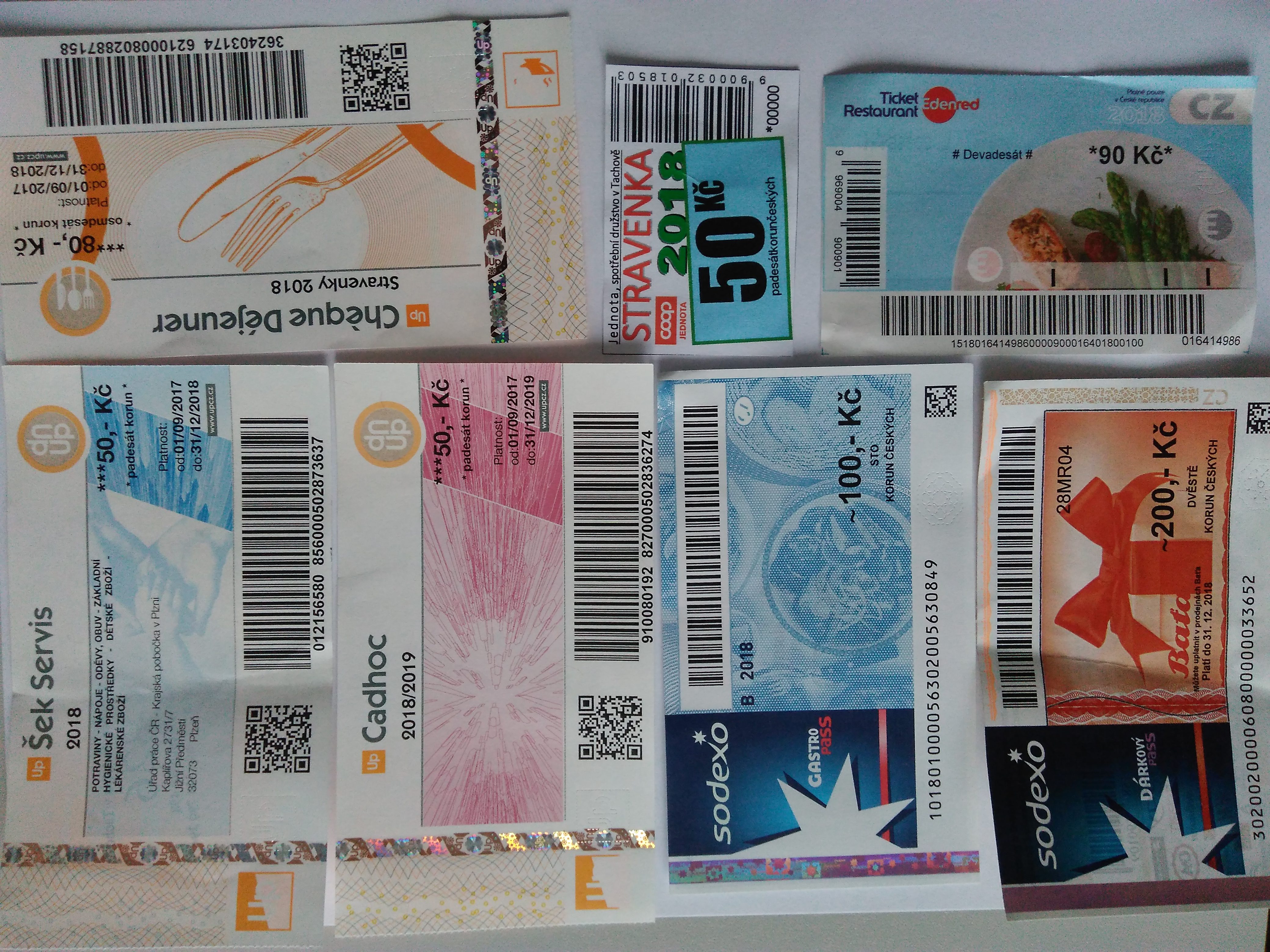 Up ( Chéque Déjeuner, Šek Servis, Cadhoc), Edenred (Ticket Restaurant, Service, Compliments ), Sodexo (Gastro Pass, Gastro dárkový, bonus)